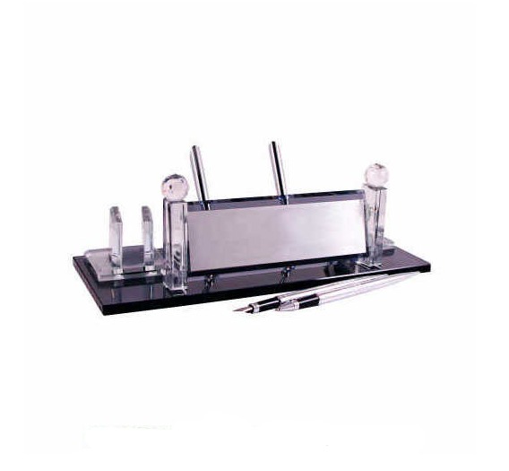 Üzerinde 2 adet kalem 1 adet saat, kartvizit veyahut not kağıdınızı koyabileceğiniz bölüm ve isim alanı bulunan masanıza güzellik katacak kullanışlı hediyelik gümüş renk aksesuarlı masa üzeri isimlik.