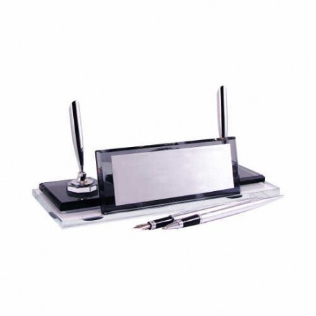 Üzerinde 2 adet kalem 1 adet saat ve isim alanı bulunan masanıza güzellik katacak kullanışlı hediyelik gümüş renk aksesuarlı masa üzeri isimlik.